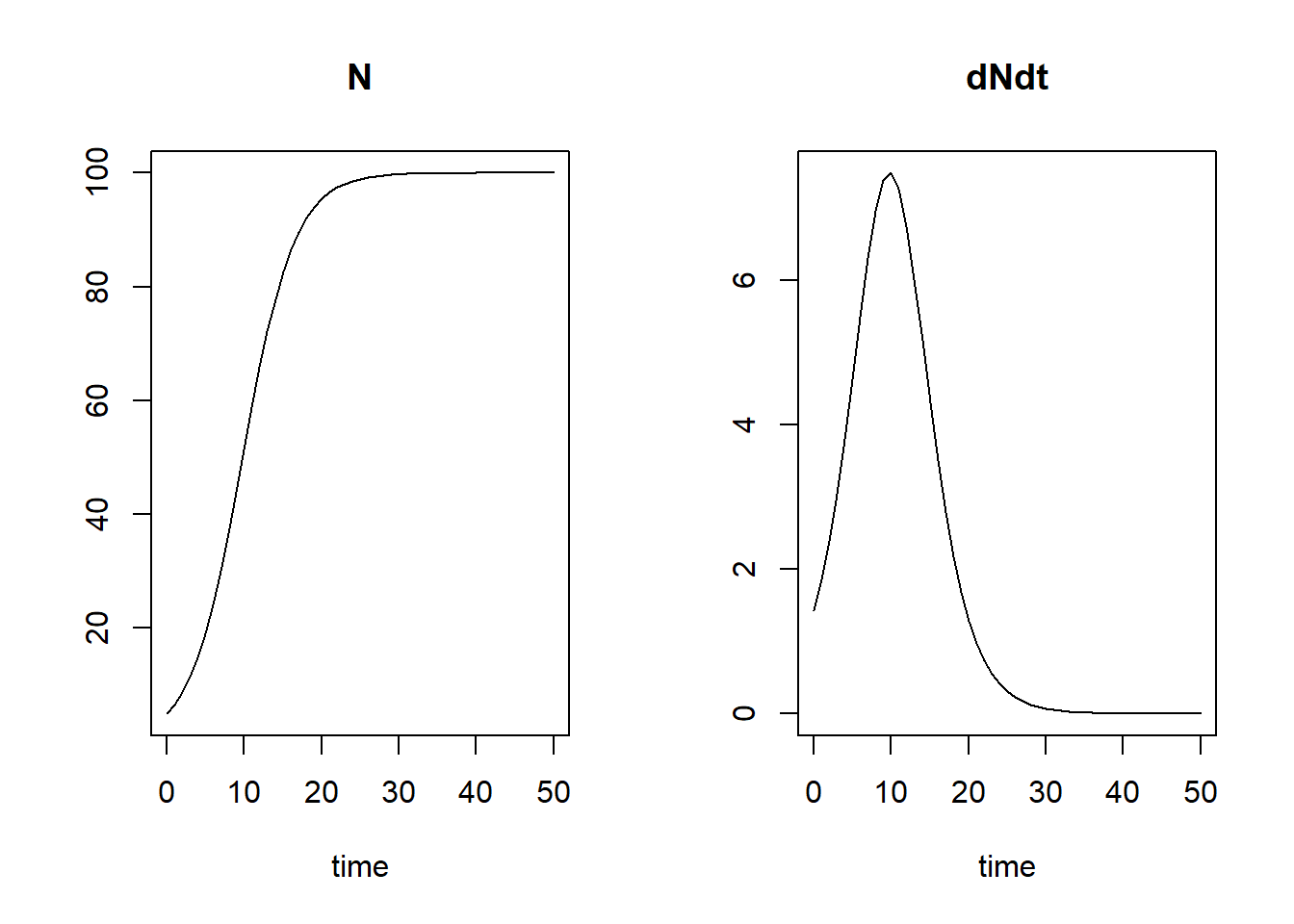 To show how the template can be used to implement an ODE model in R, let’s model a population with logistic growth: