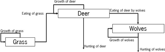 PS: note that death rates are not included for grass, deer and wolves: this means that it is assumed that all grass, deer and wolves will be either consumed or hunted before death!