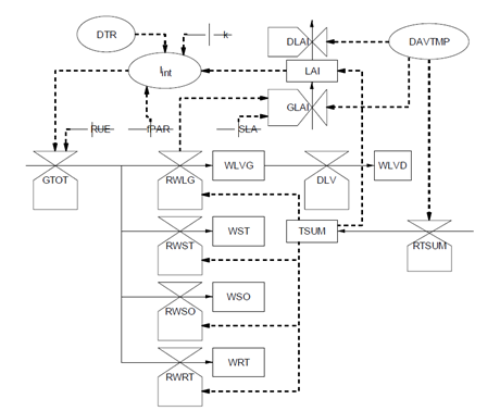 From the Forester diagram, it is clear that needs information from the parameter , and , the amount of PAR radiation intercepted. needs information from , , and .