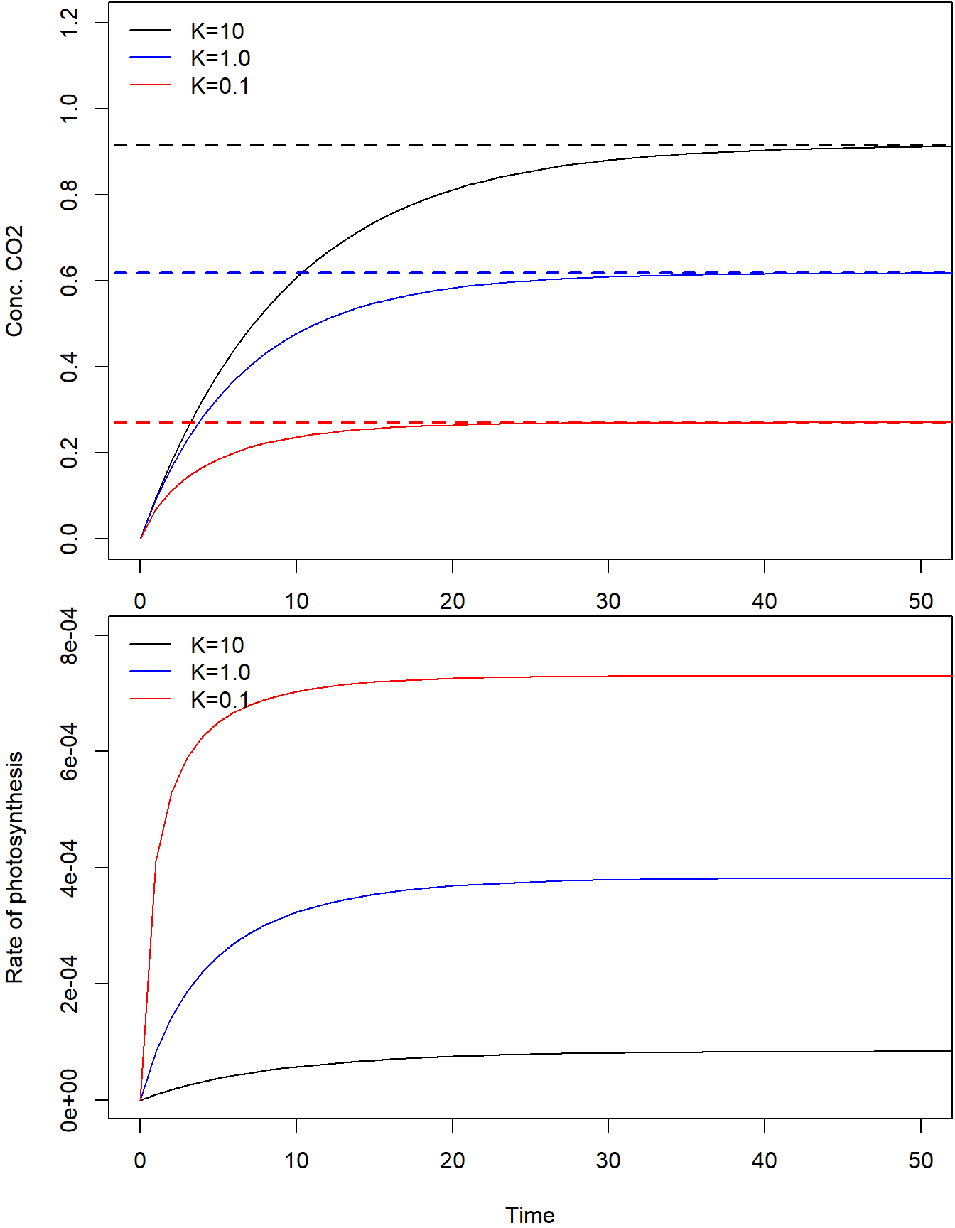 (“x-axis”) as asymptote. The smaller the K-value, the steeper the curve. For a very
