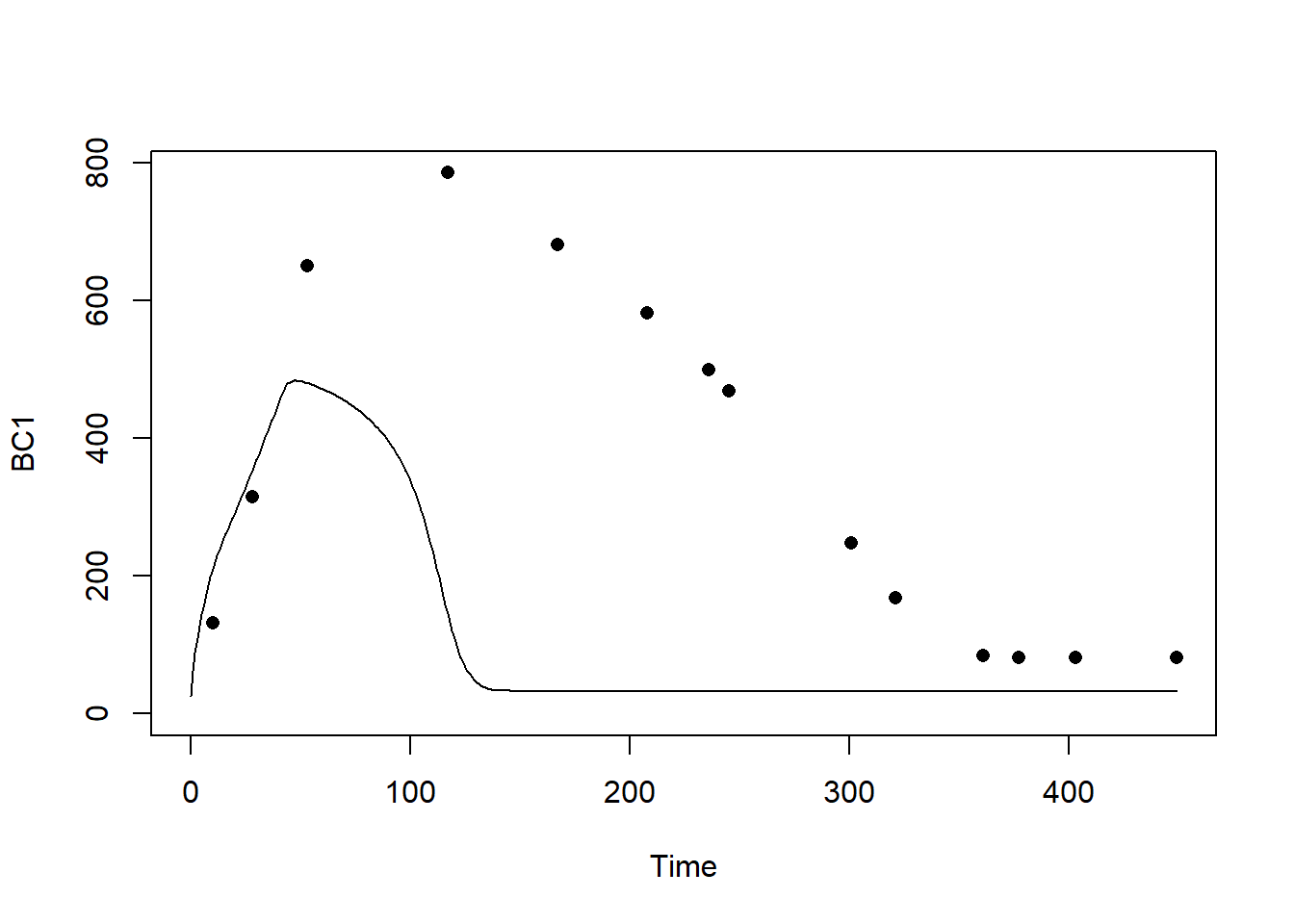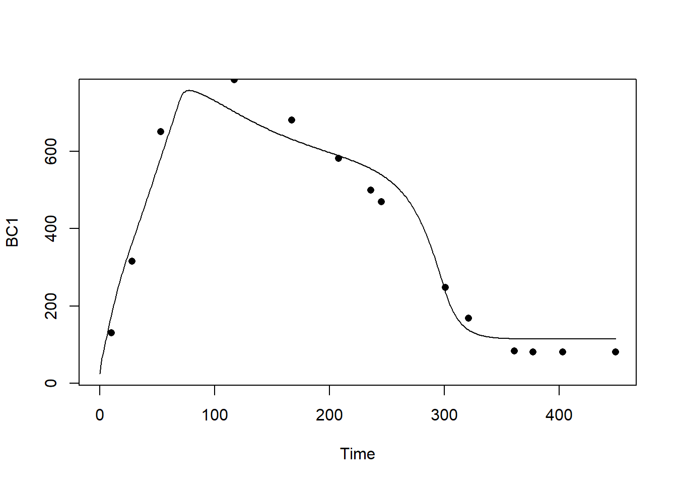points(dat$time, dat$BC1, pch = 16)